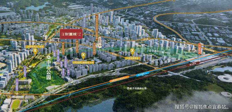 ·半月环公园(规划中):约48万㎡活力绿洲,链接城市繁华与自然纽带,财富城二期矗立半月环公园头排,将公园美景纳入塔尖居住视野,尽显“曼哈顿中央公园”式享受。