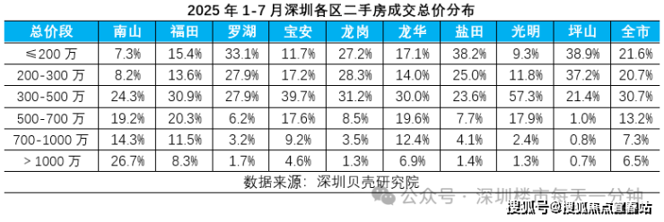 据深圳贝壳研究院数据显示,今年1-7月4万元以下成交占比达到42%,居各单价段之首。