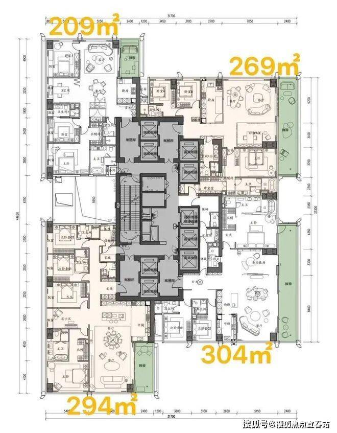 项目容积率7.59,限高250米,规划5栋超高层住宅,采用全玻璃幕墙设计,实用率高达92%以上,主力户型200㎡以上大平层,住宅约506套。