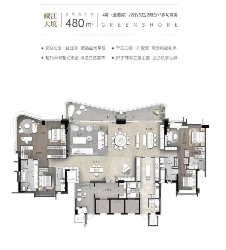 画江为界,跨越时代的岛尖藏品,4套房2厅5卫+1多功能房设计,4.0时代人居范本,重新定义珠江豪宅天花板。