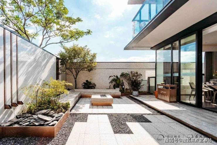 部分戶型規劃為下沉式庭院,打造雙層院落,以及配有前後花園,有天有地,舒適生活由此起。
