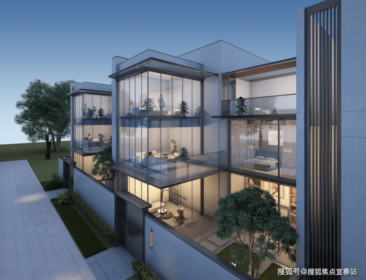 項目是鶴山首個採用後現代主義風格的別墅,外牆採用大面積的落地玻璃窗,形似優雅的水晶,增加室內光亮的同時還可以更好的欣賞窗外的風景。