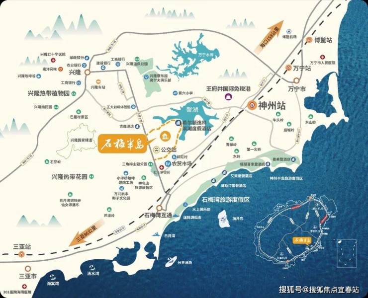 4⃣【交通】双高铁、双高速、6路公交,岛内外畅达无忧石梅半岛位于兴梅大道东侧,交通四通八达,距离博鳌机场约60公里,三亚机场约113公里,海口机场约170公里;距神州站约8.9公里,距万宁站约23公里,G98石梅、莲花双出口接入海南环岛高速,6路公交车直达万宁市区、兴隆镇区、周边各大旅游景区。