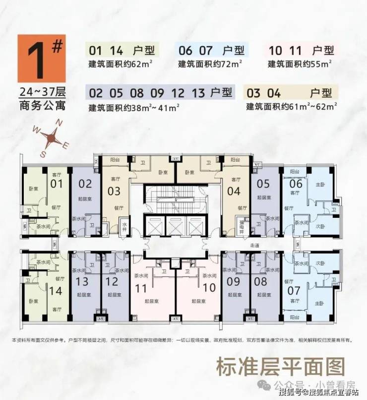 约38-63㎡多种户型,最多5.4m大面宽设计;