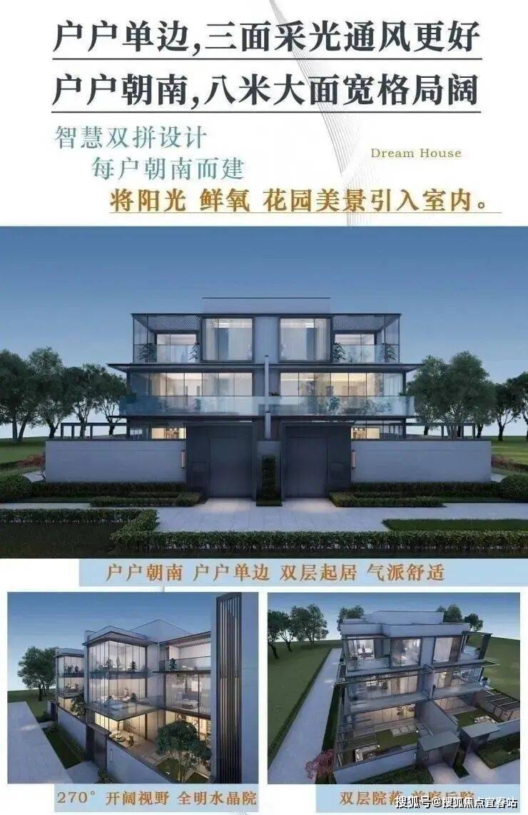 现代别墅——【水晶西江院】:户型设计以双拼为主,户户单边,外墙采用大面积双层中空玻璃窗设计,多面采光,形似优雅的水晶,采光及视野俱佳,多功能空间,高拓展+高实用率。