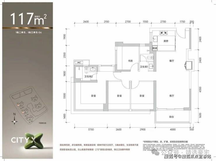 户型面积:88-117平方米,涵盖3-4房户型,内部实体墙少,改造空间大。