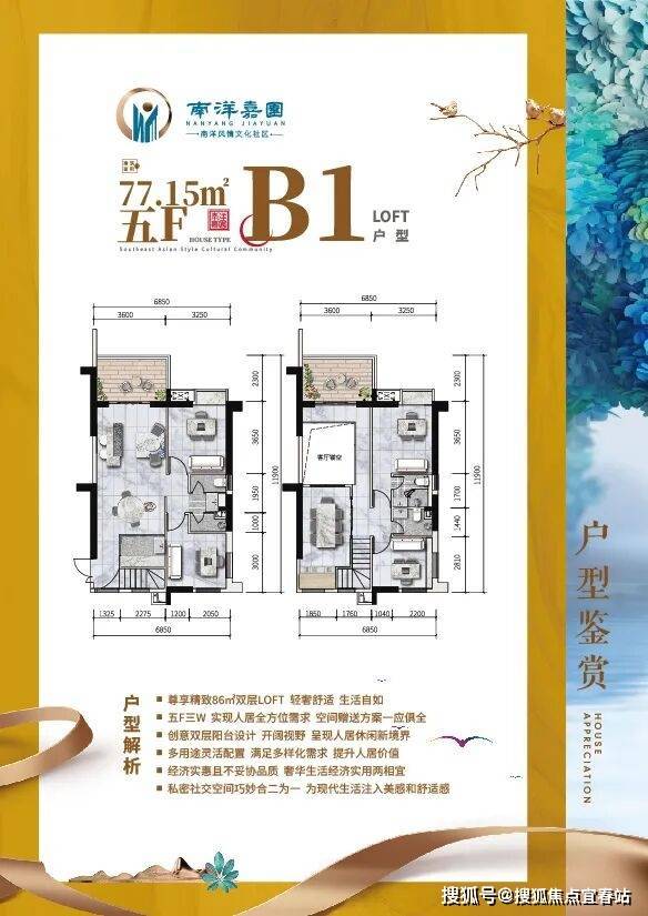 🏠 B1户型 LOFT 约77㎡ 五室两厅三卫