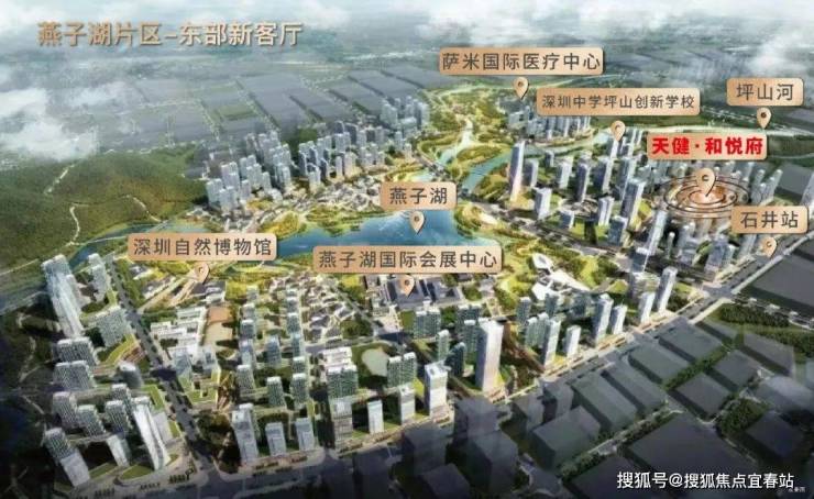 2023年深圳两会提及加快建设9大区域,包括燕子湖新区,坪山十四五提出“1+7+N”重点片区格局,1为燕子湖,市级区级双重背书,高标准打造定位东部城市新客厅。