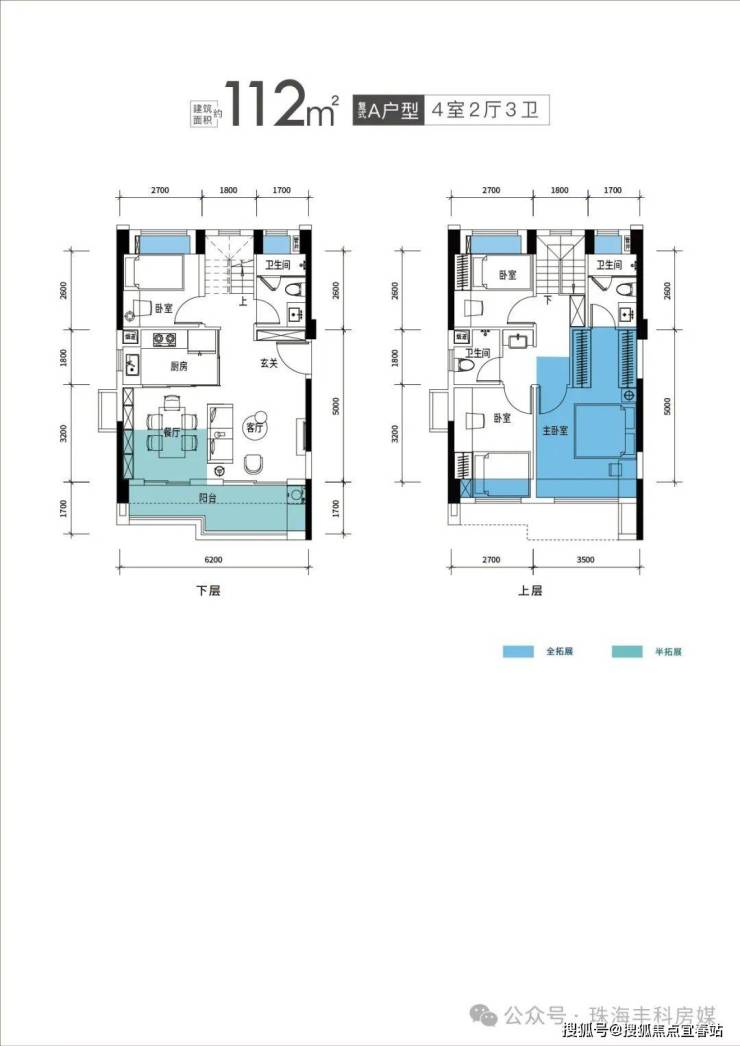 112m²复式3+1房三卫