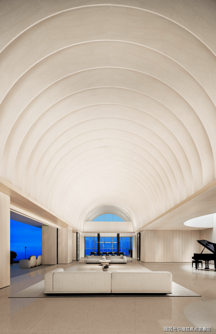 在360米的云端之上,"天际会所"宛如一面悬挂天际的明镜,承袭了"天空之镜"的无边清澈。几何的对称美被自然光赋予生命,流转间更显空间的层次与活力,现代建筑的永恒魅力在此得以淋漓尽致地展现。