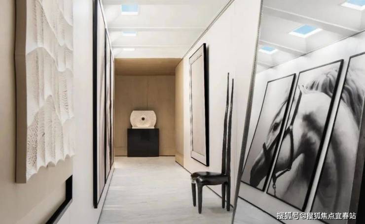 电梯厅作为家的第一道风景,从铺陈的地毯、摆放的雕塑至备置的雨伞,无不彰显个性化痕迹。在悠长的艺术走廊里,个性化的艺术品收藏洗涤着业主日常的繁忙,走廊的末端,一株晶莹剔透的琉璃玉兰静静绽放,优雅而宁静,仿佛散发着淡淡的香气。