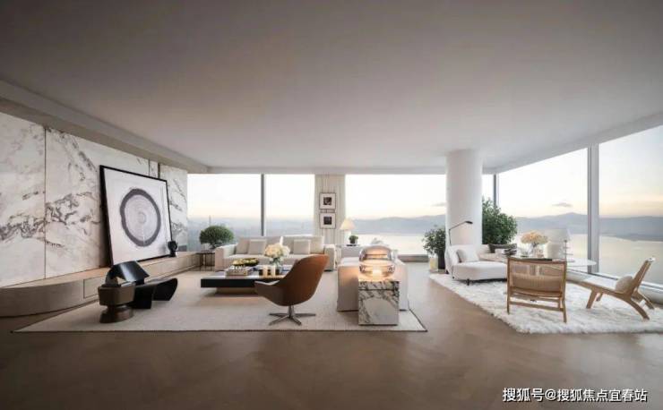 推开手工铸造的庄重铜门,入目百米对接云海。全景玻璃幕墙使得整座“私人会馆”宛若云间浮岛,其中一面可观海上日升月落,另一面则轮播城市昼夜熙攘。隐约可见的葱茏绿植,营造出空中花园般的户外体验,充满生命力。