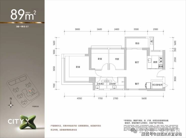 07户型89平米 折扣后318-325万 南北通透