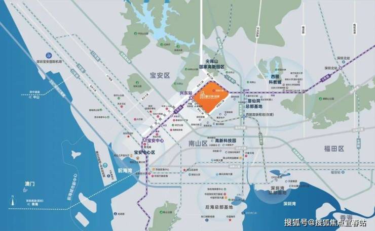 雪花科创城处于南山宝安双区核芯,5号线、29号线(规划中)兴东站双地铁上盖,未来13号线(建设中)开通后可在留仙洞换乘,快速抵达南山科技园及后海片区。京港澳高速、南光高速、南坪快速等多条快速路环绕,约20min可达宝安国际机场,集海陆空轨立体交通网络于一体。