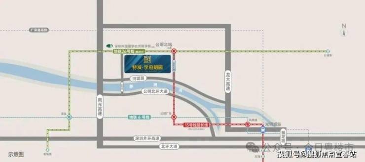 交通配套:特发学府朗园的交通配套极为便捷,项目紧邻在建地铁13号线二期(北延)公明北站,距离约200米,预计2026年开通。13号线被称为"高新技术人才专线",纵贯光明、宝安、南山三区,起于东角头站,终于公明北站,开通后约30分钟可抵达南山核心区,45分钟可达深圳湾口岸。此外,规划中的26号线(国际机场专线)也将与13号线在公明北站交汇,形成"双地铁"格局,进一步提升通达性。