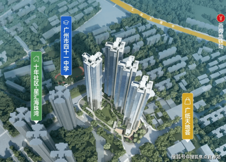 紧邻广纸天地荟商业综合体,距乐峰广场直线距离约1.5km,3km直线范围内畅联江南西、江燕商圈,三大商圈环绕。