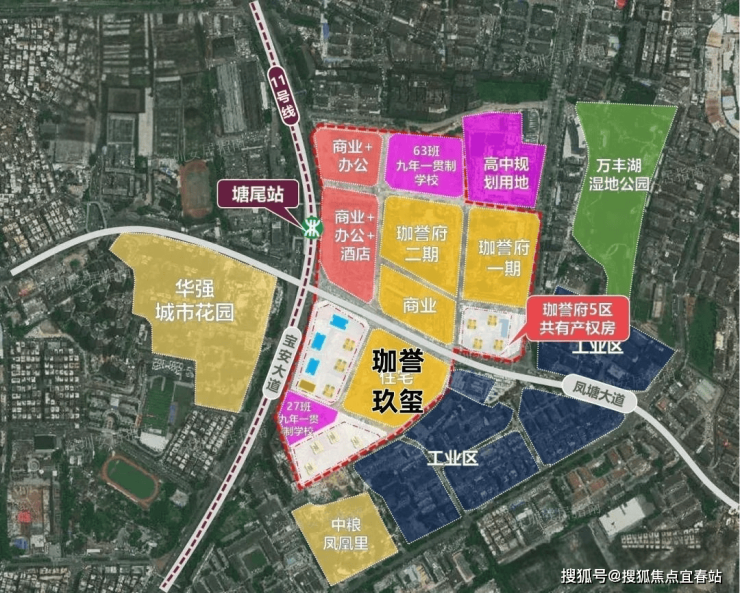 鸿荣源珈誉玖玺位于宝安大道与凤塘大道交汇处东南侧,该项目原是"塘尾片区城市更新单元“,由鸿荣源集团一手打造,也号称是第二个壹城中心升级版,地处沙井核心板块,周边1公里内涵盖3个重量级商业(万丰海岸城购物中心+鸿荣源壹方奥特莱斯+华强购物中心),11号地铁线”塘尾站“距离约300米。