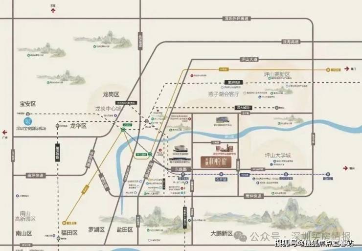 约1.2KM到燕子湖国际会展中心,约6KM内到坪山体育中心,紧邻约10万㎡的六馆一城、深圳自然博物馆等环绕,媲美福田市民中心。