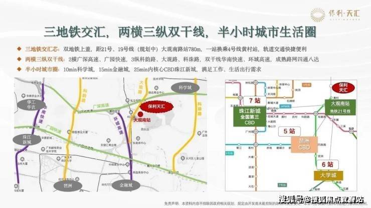 项目距离21号线大观南路站约1.2公里,步行大约20分钟可达,一站即可换乘4号线前往金融城及琶洲地区,四站后可在员村换乘5号线直达珠江新城。