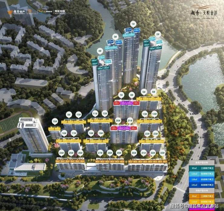 在售产品:小高层95㎡/125㎡三四房、超高层96㎡三房、125㎡/141㎡四房、底叠150-200㎡三四房。