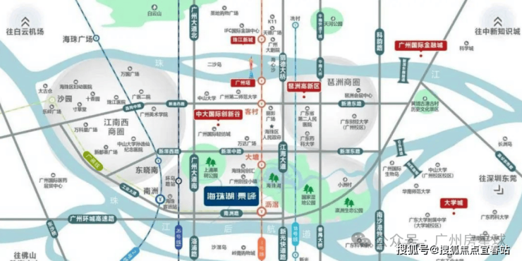 海珠新城开发未来将打造为集历史文化、生态、商务、医疗康养、教育、智慧城市等于一体的岭南特色大城。