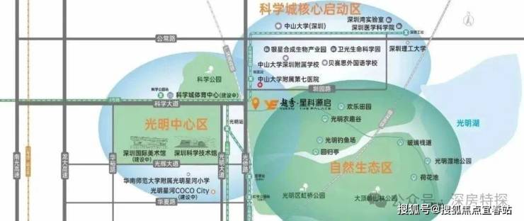 越秀星汇珑府,位于光明区新湖街道光侨路与科学大道交汇处东南侧,地处光明中心区板块,西北侧与科学公园北翼相邻,东南侧则是充满欢乐的光明欢乐田园,北侧靠近中山大学深圳校区及其附属第七医院,南面距离光明高铁站仅4.8公里。