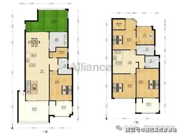 户型特点:AC区别墅面积是225平中间位和269平端户别墅组成,上下四层,套内使用面积约600~700平,客厅开间6~6.5米,中间位别墅前后花园约70平,端户别墅三面花园约120平方,有的会带50平天台花园。