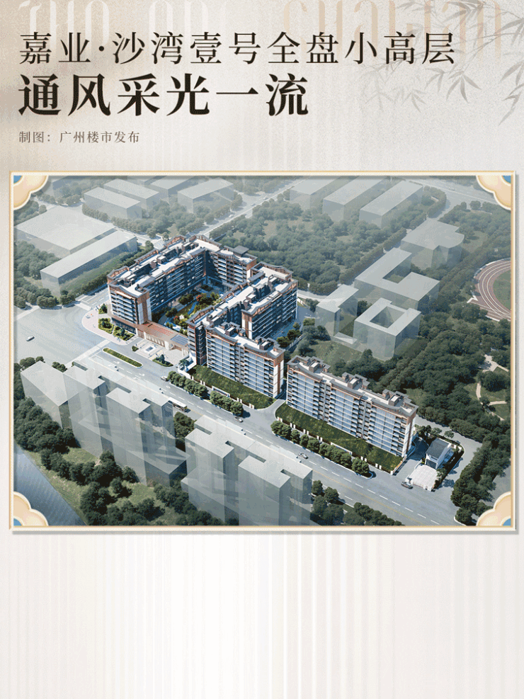 嘉业·沙湾壹号则截然不同——它在顶层设计上,不惜牺牲货值,将12栋住宅都设为8层,全盘仅242套房源,此举在广州相当罕见。