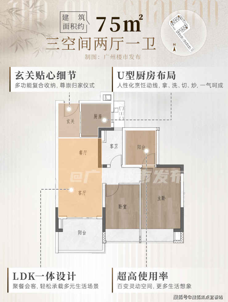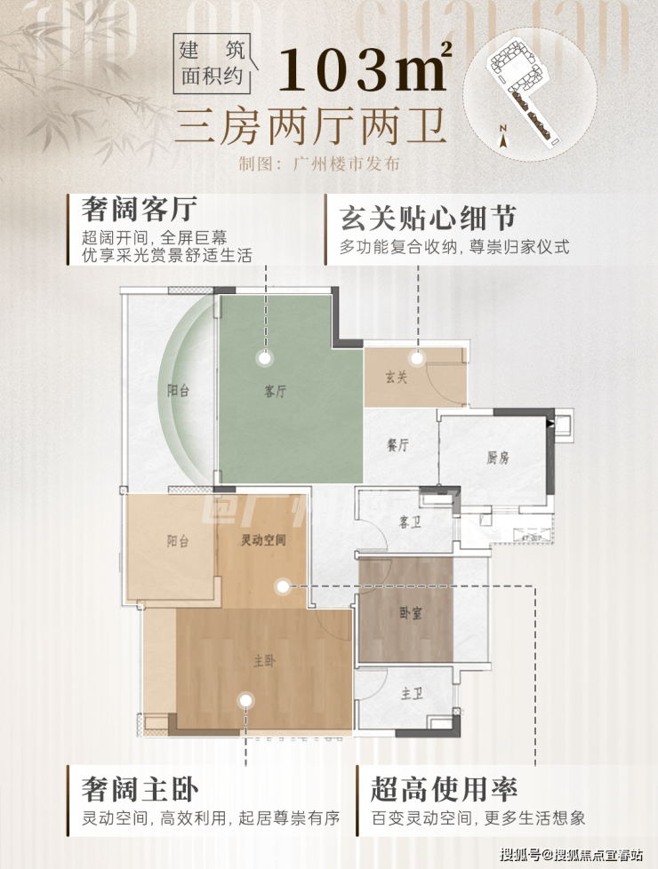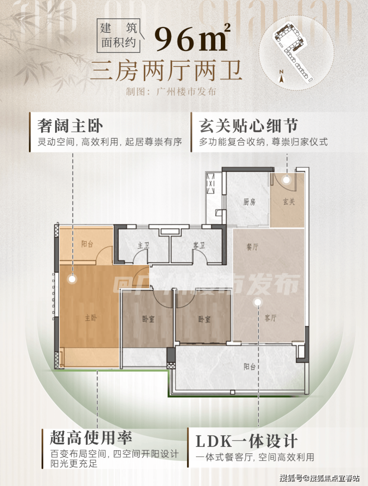 一来,对比片区同面积二手(使用率普遍70-85%),项目使用空间更大,满足买家向上置换的体验。