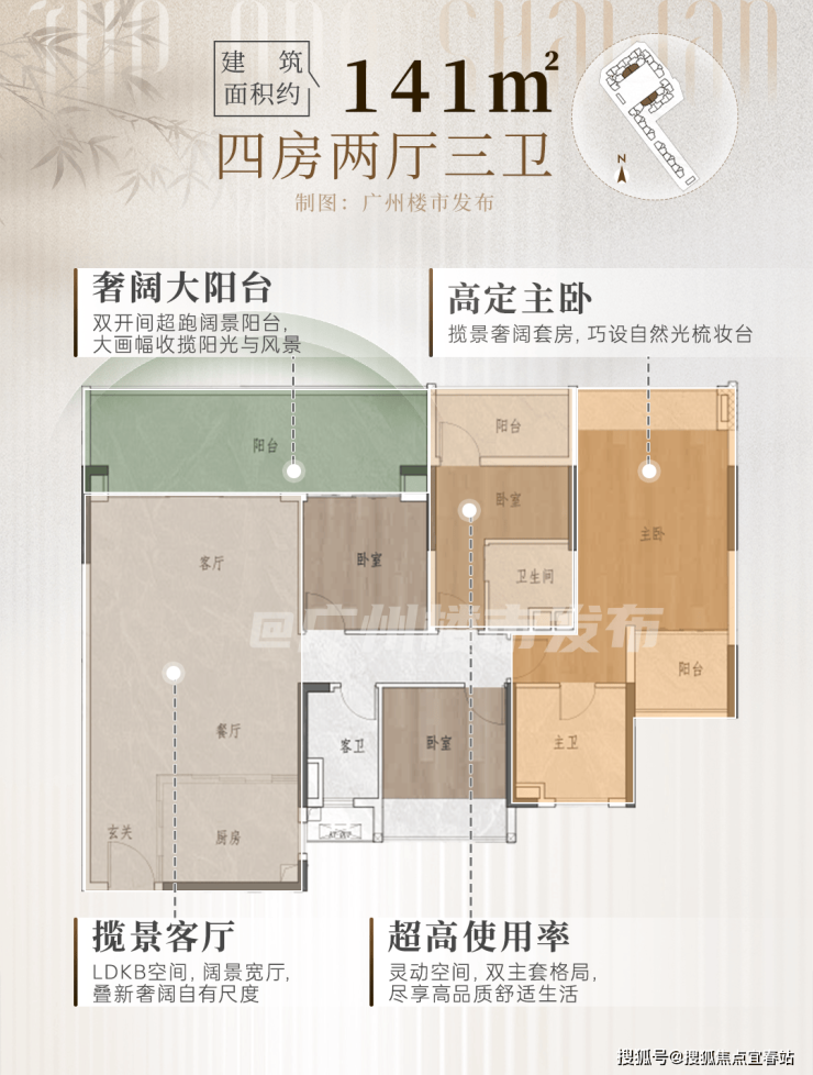 约141㎡板房做到奢阔双主套、跑道式阳台等,是过往同面积产品难以企及的。未来新规产品流入二手市场,将更具市场竞争力。