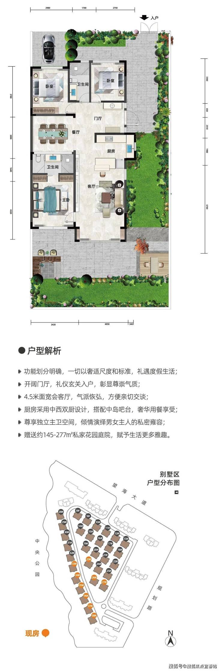 前后双花园的规划配置,在带来私属宅院尊崇感的同时,自成一局的空间系统,也缩小了外界带来的影响,提供更高的安全性。 在院子中,可以感受到大自然的气息,听到鸟儿的歌唱,看到花儿的绽放。也可以种种花花草草,品诗意人生。