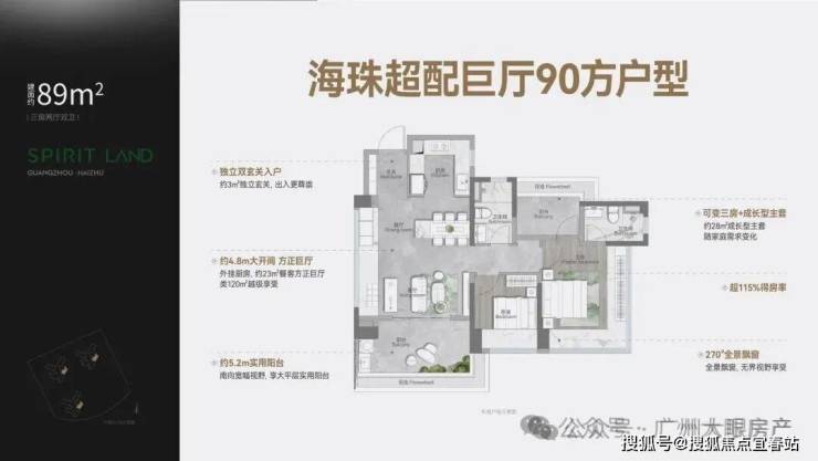 约28㎡成长型大主套 灵动可变三房 ,270°全景飘窗 无限广角