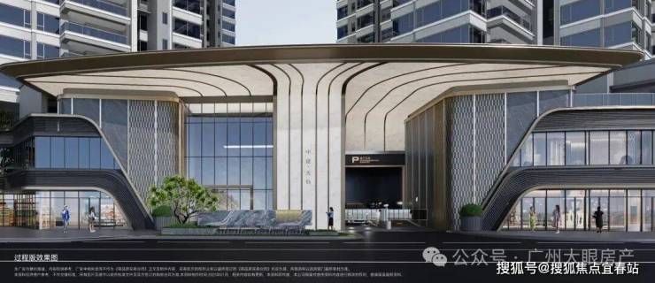 中建天钰主入口采用酒店式落客区设计,进入小区前,必须穿过拥有高透外立面的归家大堂,约9米的挑高,竖向尺度上便拉满了酒店迎宾感。