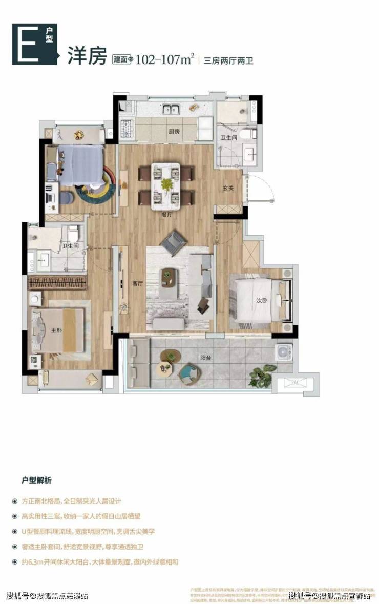 三室度假洋房建筑面积约102-107㎡三房两厅两卫