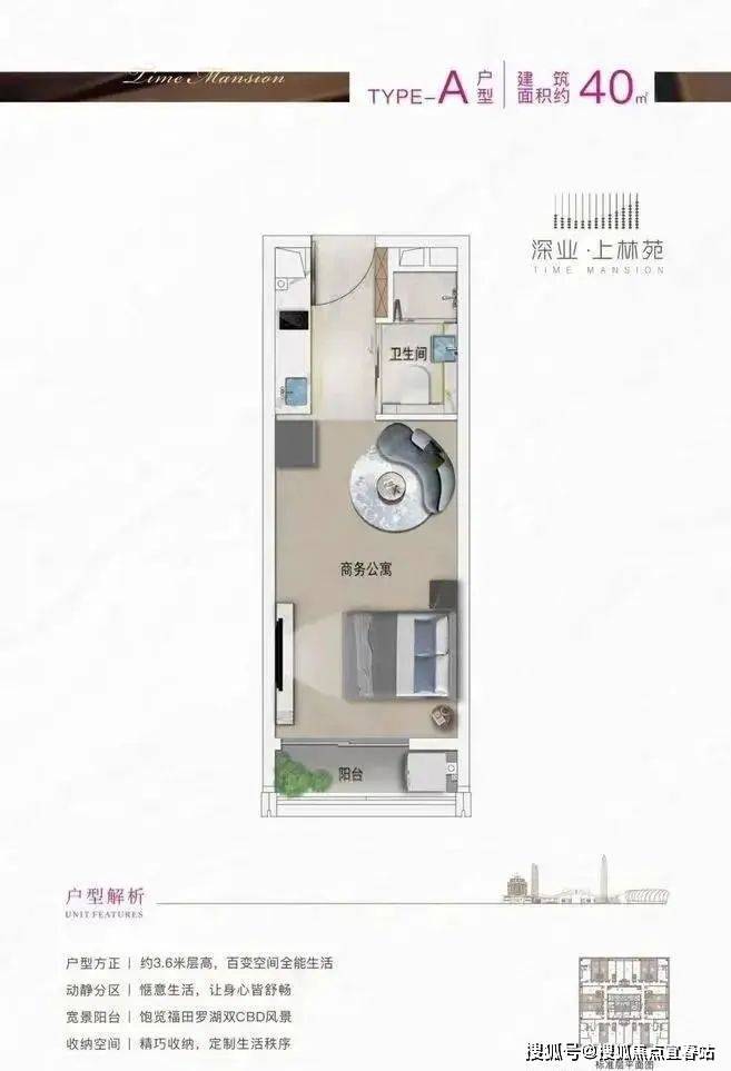 整体设计简约实用,约3.6米层高,户户均带阳台