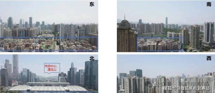 景观分析:航拍景观(100m),东南西面都是待拆民房,北面远CBD及莲花山,南面高区可看皇岗公园和部分深圳湾海景。