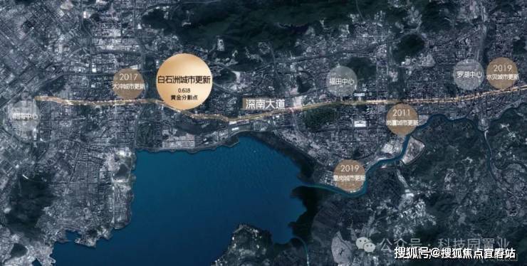 在伦敦、纽约这样的超级城市,其城市主轴的黄金分割点上均屹立着城市超级影响力的项目,如伦敦金丝雀码头、纽约中央公园,而深圳的发展主轴深南大道自东向西,绿景白石洲正处于黄金分割点之上。项目位处城市GDP第一的南山区,深南大道与大沙河科创走廊十字交汇点,代言深圳发展高度。