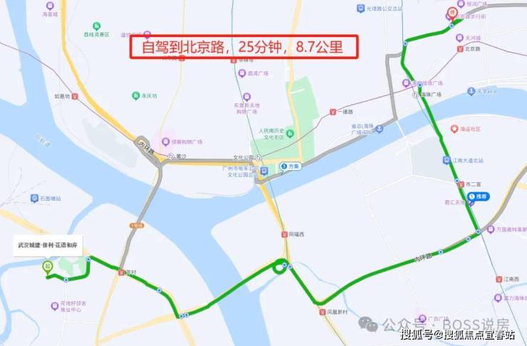 下面将会测试从项目项目出发,到北京路,珠江新城,琶洲,金融城的具体时间;