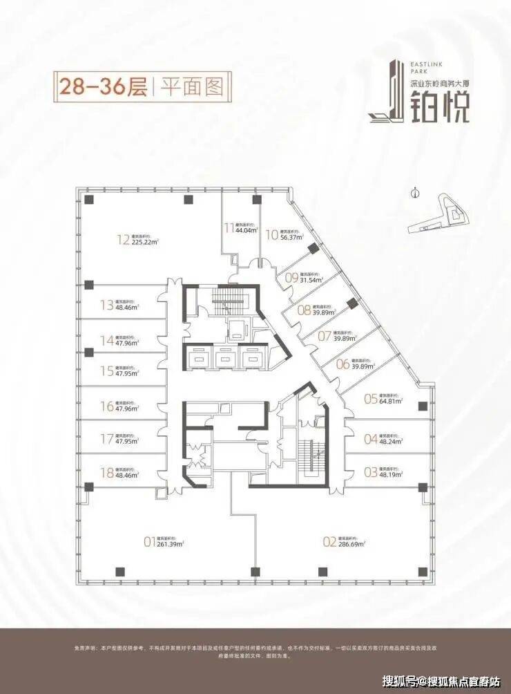 塔楼办公:位于17-36层,整体面积约27767.36㎡,单层面积约1460㎡