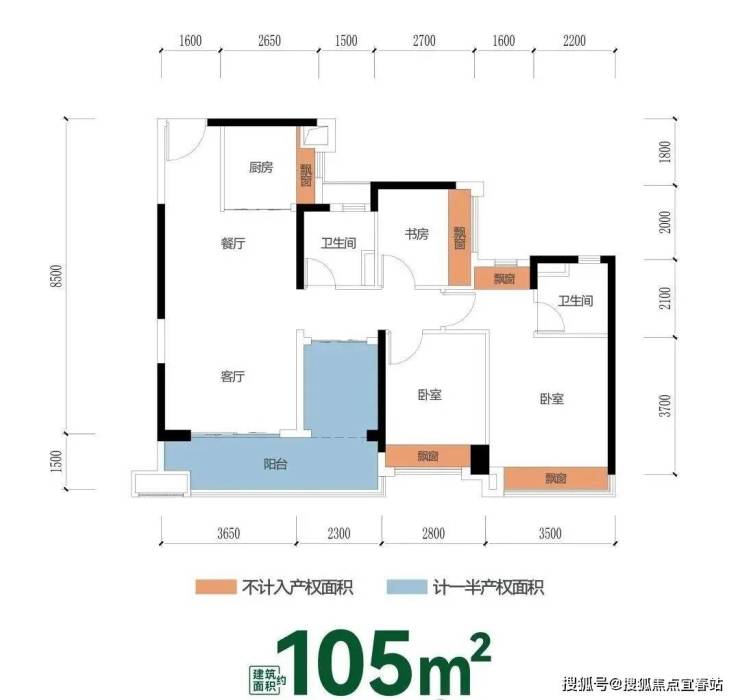 主卧双飘窗+次卧等面宽飘窗,全赠送高拓空间