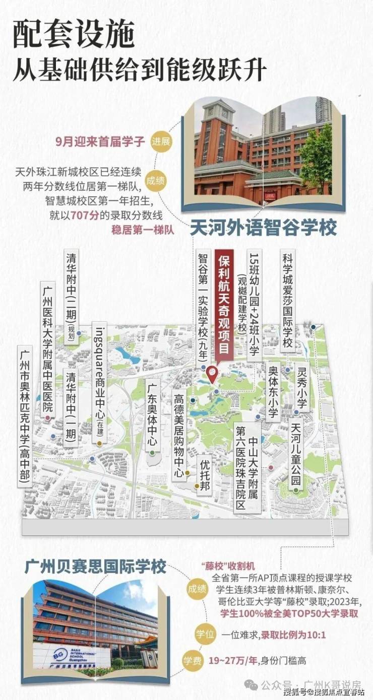 天外智谷分为两个校区,越秀观樾配建24班小学;缦云广州配建的九年制学校(18班小学+27班中学),今年9月份开学。