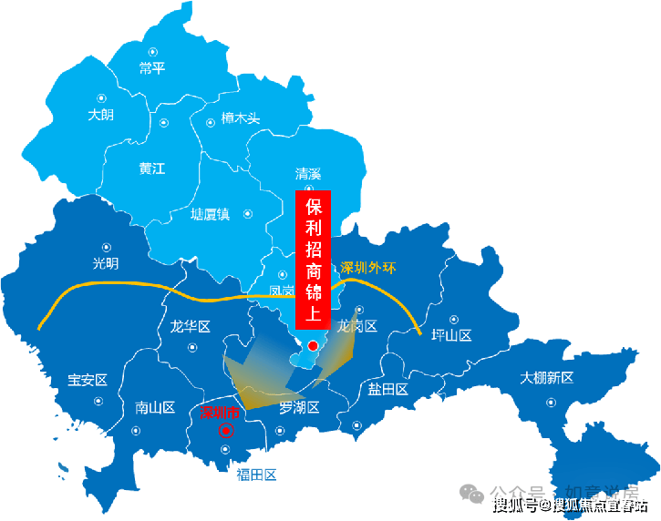 项目位置优越,是东莞临深片区唯一一个位于深圳二环线以内的镇区,倒三角镶入深圳腹地,三面环深,凤岗已经纳入深圳规划发展中,我们项目所在片区3公里即8分钟到深圳大运,享受深圳全面的生活配套