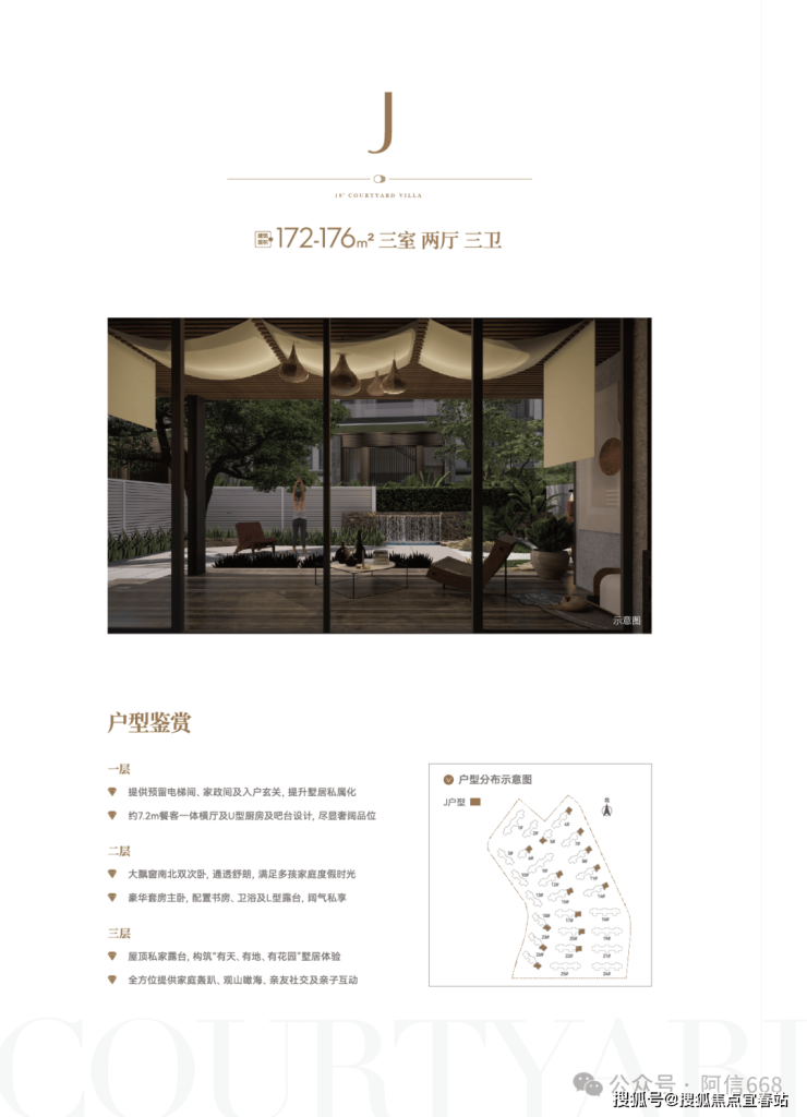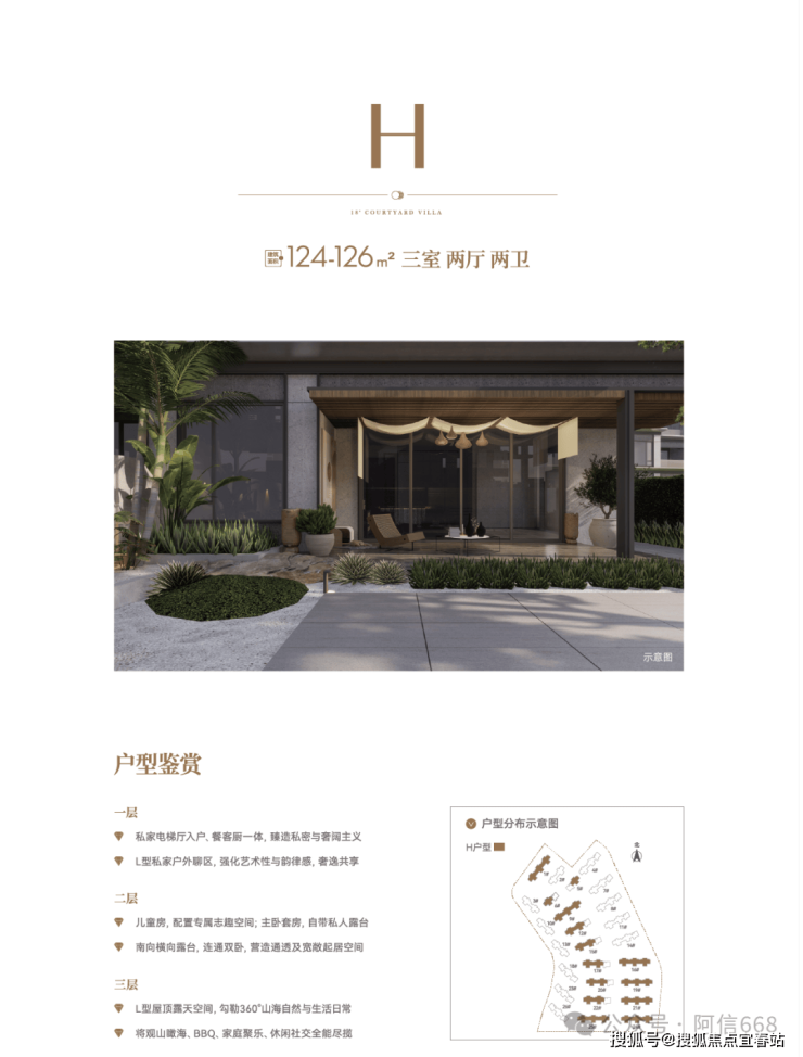 匠呈建面约125–175㎡亲海叠院,仅属于少数人的度假院墅。背山而筑,枕潮而栖,将建筑艺术与山海精神勾勒相融。以“灰空间”匠心独运,实现多场景交互体验。独创双首层私密入户,全分离的垂直动线,实现户户平地入院。一户一花园、超大露台,以及私家地下空间等匠心设计,打造独门、独院、上下叠互不干扰以及专属私密的度假体验。超高得房率空间设计,全方面提升墅居奢尺感和舒适感,营造星空为顶、绿意为底,山海为屏的多重美好私属生活场景。