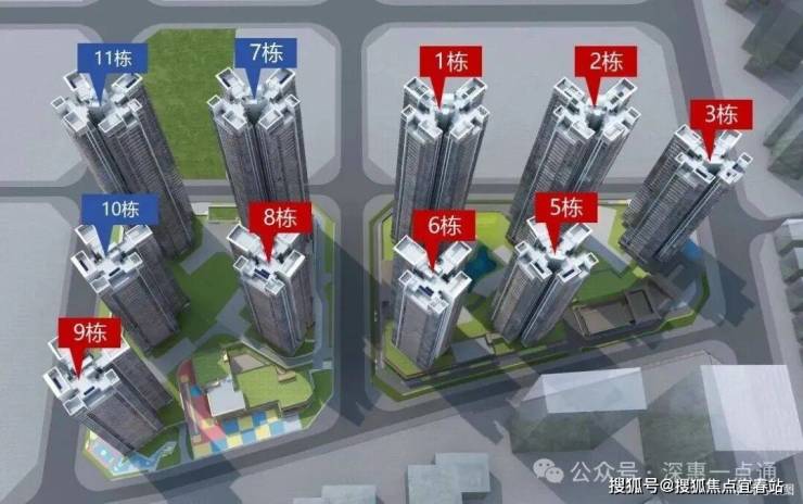 整个项目规划户数为1992户,其中东区1016套,西区976套,全部都是规划的商品房,涵盖了多种户型设计。其中,6栋、8栋、9栋和10栋的高层住宅采用2梯5户设计,3栋和5栋为2梯6户,而1栋、2栋、7栋和11栋的超高层住宅则采用3梯6户设计。
