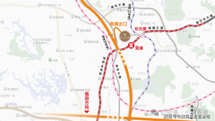 ★项目距离4号地铁线“长湖站”约1.1公里,周边18号线/22号线(在建中),直达北站枢纽、福田CBD;紧邻梅观高速、龙华大道、观澜大道,快速通达全城。