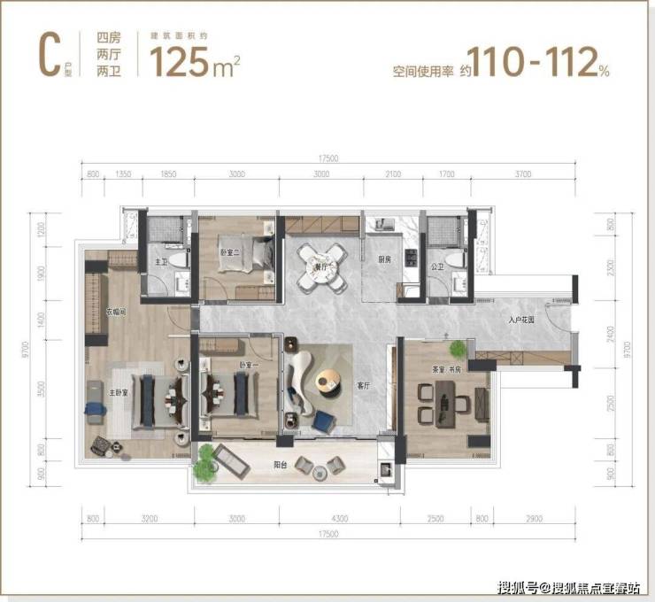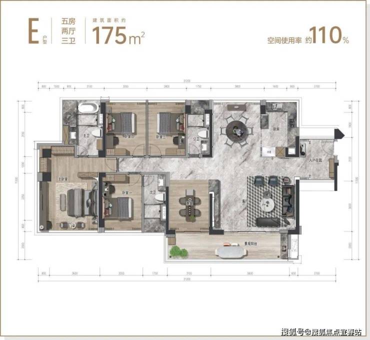 产品面积段:建面约85㎡-175㎡高得房率奢阔三至五房 新规好宅