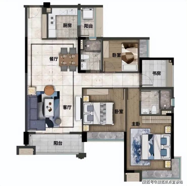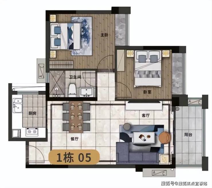2.南北双阳台设计,多开间南向采光