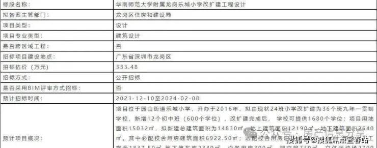 2024年1月一则政府通知,关于:华南师范大学附属乐城小学由现状24班小学改扩建为36班九年一贯制学校,新增12班初中,政府于2024年1月启动学校升级九年一贯制改扩建工程勘查招标计划。(数据来自网络新闻) 的消息一出,直接在龙岗家长群里炸开了锅,要知道这,这对区内基础教育的优质均衡发展可谓举足轻重。彻底弥补乐城小学“一站式基础教育”的遗憾。
