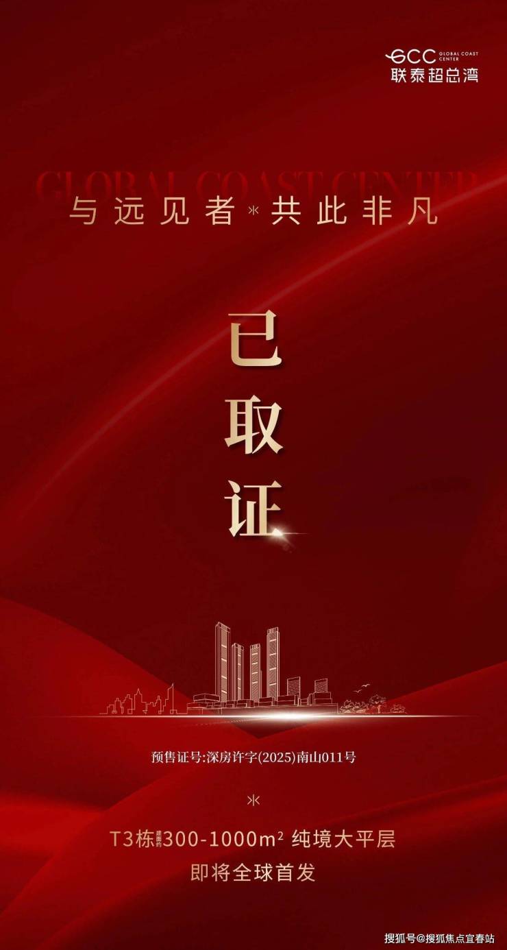 深超总「GCC联泰超总湾」已取证!首推T3栋正式取证,可售房源共计125套,面积304-327--402-568-1032㎡户型,预计12月16日开盘。