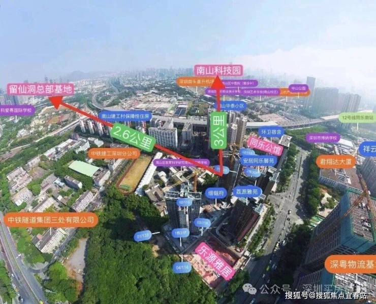 项目北向约2.5km是留仙洞总部基地,是集战略性新兴产业特征和企业总部特征为一体的科技产业CBD,已吸引了大疆、光峰光电、天珑移动、乐普医疗等头部企业总部入驻,未来将形成超3000亿元的产业集群,成为深圳引领高端发展的创新高地。
